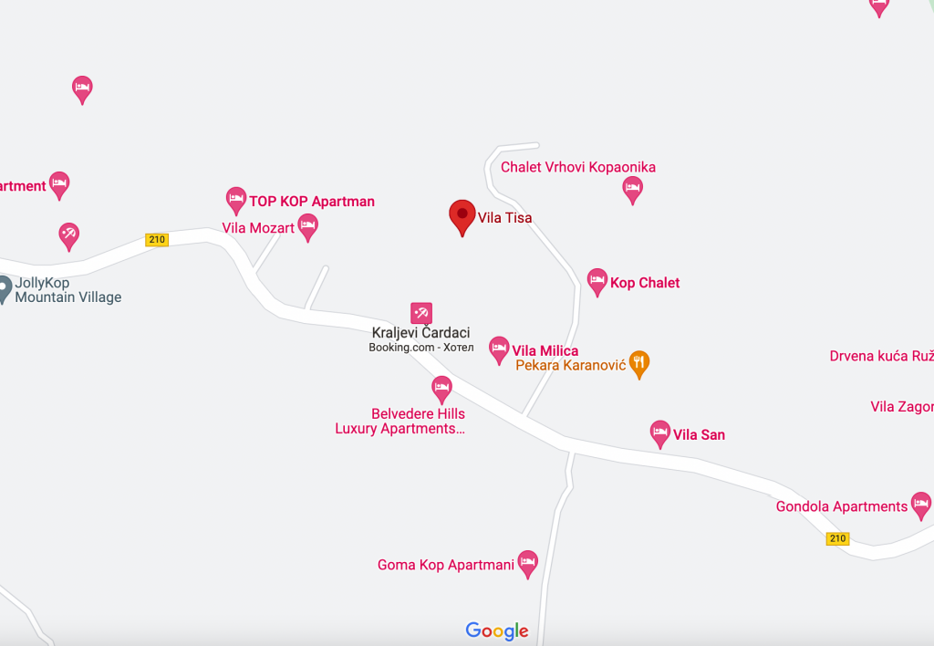 Vila Tisa smeštena je u neposrednoj blizini Kraljevih Čardaka. Vila je nova i komforno opremljena. Apartman je namenjen za 6 osoba, površine oko 50m². Raspolaže kompletno opremljenom kuhinjom, dnevnom sobom sa garniturom na razvlačenje, kupatilom, ulaznim hodnikom i spavaćom sobom sa fransuckim ležajem i krevetom na sprat. Velika terasa sa prelepim pogledom. Vila poseduje centralno grejanje. Market „Maxi“, bankomat, i autobuska stanica su u neposrednoj blizini. Mogućnost korišćenja parkinga blizu glavnog puta.